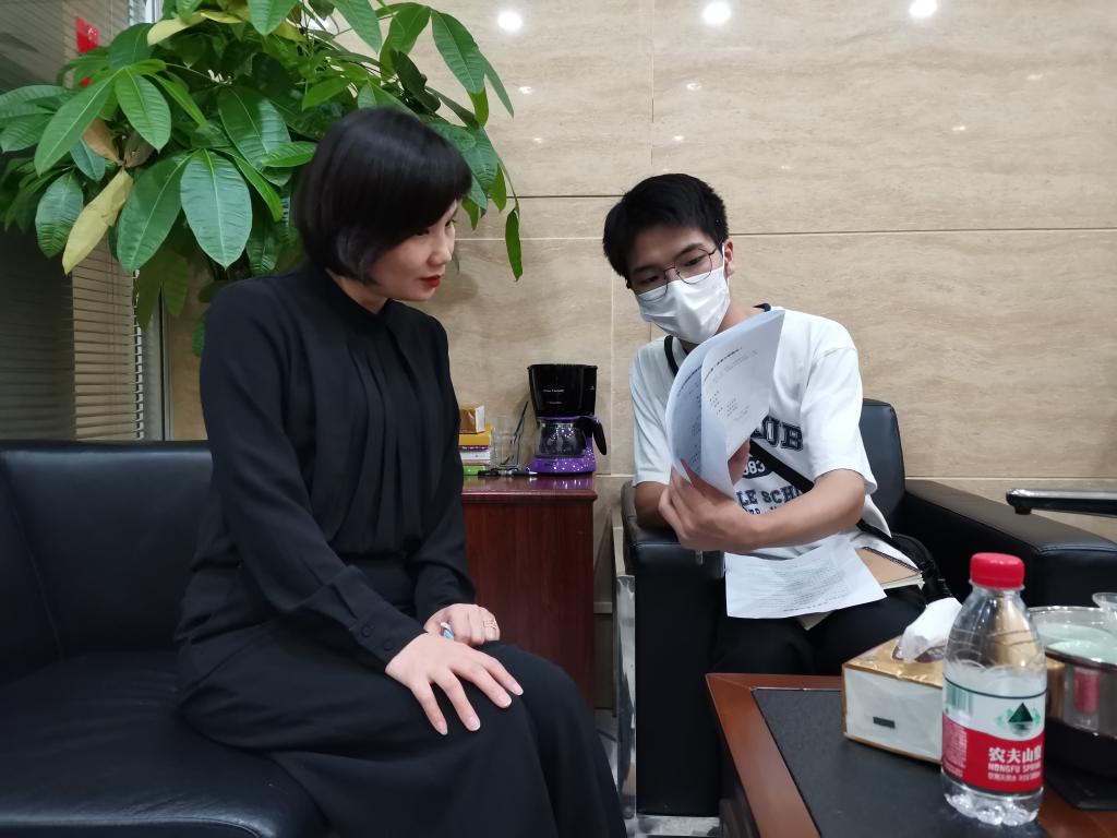 在交流过程中,兰丽娟老师具体介绍了本次专项调查的背景、目的、内容等事宜。实践团成员分组开展毕业生和业务主管访谈和问卷调查、招聘负责人问卷调查等项目,并录制毕业生1分钟职业自述短视频。在访谈中,16金融工程二班毕业生谭象杰建议学弟学妹珍惜在校学习时光,认真学习,提高专业基础知识和技能,考取相关资格证书,积极参与实习,提升实践能力。