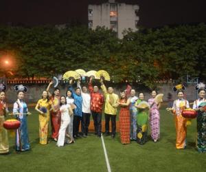 悠扬婉转的音乐响起,身着艳丽旗袍的女老师们手持古扇,迈着碎步缓缓入场,一颦一笑优雅动人,韵味十足;而男老师们则立如苍松,威严却不失风度,尽显英雄豪气。台上各位老师一丝不苟的展示着数次排练的成果,举手投足颇具专业演员的风采,而台下的观众则对老师们精心准备的“礼物”惊喜万分,纷纷报以欢呼和掌声,并拍照、摄像以作留念。在其他各学院依次展示后,财金学院以出色的现场演绎夺得大赛三等奖以及最佳组织奖,