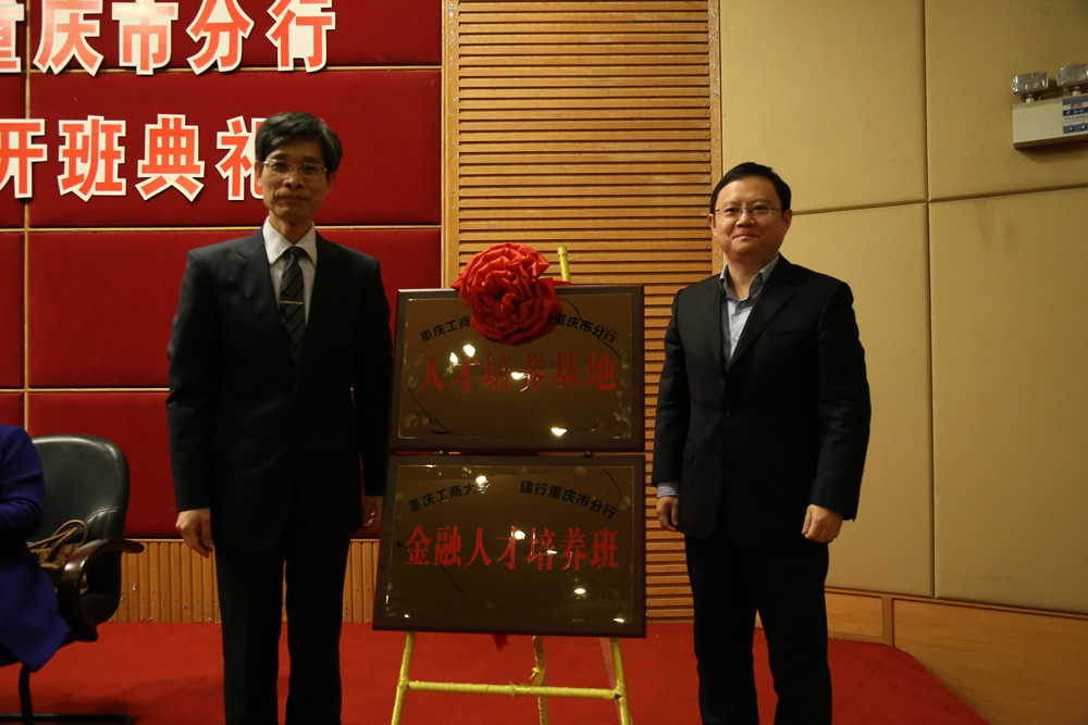 首先建行重庆分行人力资源部王栎总经理介绍了“金融人才培养班”的组建情况。张梦婷代表全体学员对建行重庆分行所给予的机会和母校的悉心栽培表示衷心的感谢,并表示要珍惜学习机会,学有所成、学有所长。建行重庆分行张希副行长和点点taptap官方网站孙芳城董事长共同为“中国建设银行重庆市分行金融人才培养班”和“中国建设银行重庆市分行人才培养基地”揭牌。建行重庆分行文姜元副行长对公司在过去十余年中对建行的大力支持、在共建“金融人才培养班”中付出的努力的各部门表示感谢。他表示,金融人才培养班”的共建是对人才培养模式的全新探索和深入合作,希望学员充分利用平台优势,珍惜机会,完善自我,为成长加油!