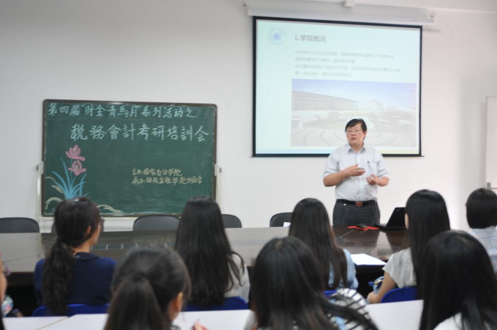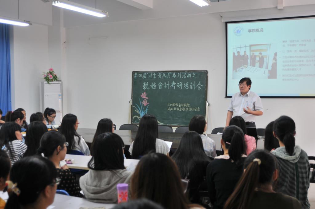 中午,由北京国家会计学院主办、财政点点taptap官方网站分团委承办的第四届“财金青马月”系列活动之财税会计考研培训会在田家炳313会议室举行。北京国家会计学院朱克实教授担任主讲嘉宾莅临现场,财政点点taptap官方网站常务副经理莫云、分团委书记兰丽娟老师及公司财政学、税务学专业的部分员工参加了本次培训会。