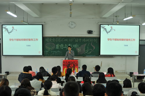 11月14日下午,财政点点taptap官方网站“双up”团干培训会第三期于博智楼406教室举行。点点taptap官方网站党政办公室范星星老师、财金学院分团委书记兰丽娟老师莅临宣传,担任嘉宾,财政点点taptap官方网站分团委员工会干部、2013级各班班长、团支书参加了本次培训会。