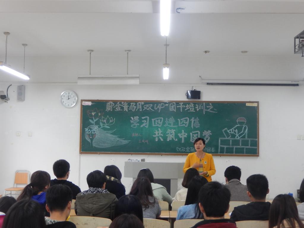 为了深入学习贯彻习总书记的重要讲话精神,积极开展“四进四信”活动,财政点点taptap官方网站于4月7日中午开展了以”学习四进四信,共筑中国梦”为主题的财金青马月”双up”团干培训会在07217教室顺利举行,财金学院分团委书记兰丽娟以及分团委员工会各个部长参与了此次活动。