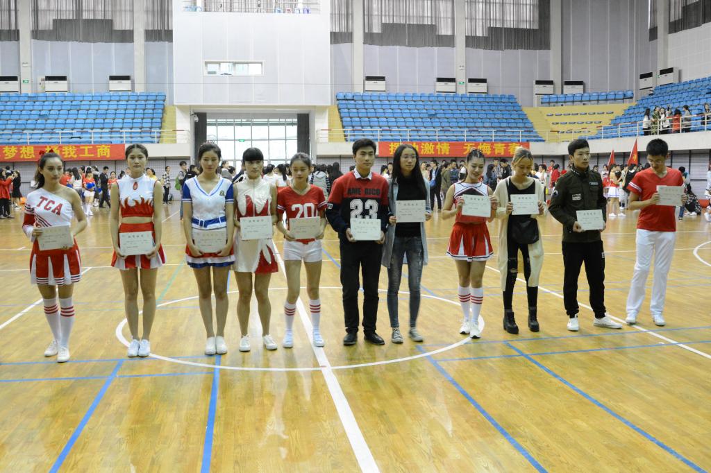 此次参赛的是来自20个学院的21支充满活力的代表队伍。财金公司啦啦操代表队——“战英队”成立以来第一次参与比赛,他们以饱满的热情,彰显着青春的魅力。队员们心怀“为财金争光”的信念,在一个月的训练中毫无懈怠、力求最好。比赛中,他们的每一次挥手、跺脚都坚定有力,毫不生涩,散发出自信与活力,博得了阵阵欢呼与掌声。在观众们逐渐高涨的热情中,历时两小时的比赛以集团体育舞蹈代表队优美流畅的表演收尾,财金学院啦啦队荣获三等奖。