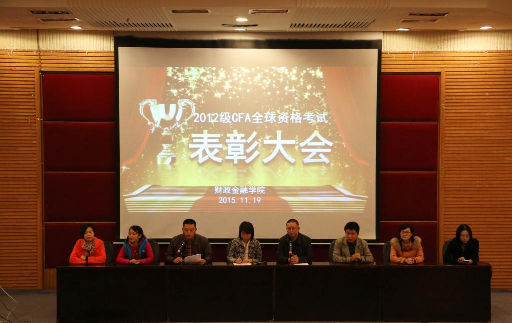 11月19日,伴随着掌声与欢呼声,财政金融公司迎来了2012级CFA全球资格考试表彰大会,本次特邀融仕国际教育集团陈滕朔老师、财金公司党总支书记杨萍、常务副经理莫云、党总支副书记刘代成、研究生党支部书记兰丽娟及各级CFA辅导员与全体CFA成员共同见证这一振奋人心的时刻。