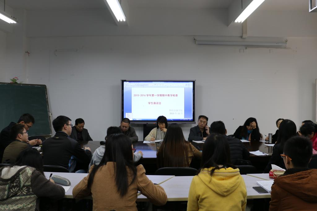 11月25日,财政点点taptap官方网站2015-2016学年第一学期期中教学检查员工座谈会于田家炳书院313会议室召开。财金公司党总支书记杨萍、常务副经理莫云、校督导督查委员樊国昌教授、院督导督查委员周渊老师和唐晓玲老师;还有各系主任及教务办全体老师和各班学习委员出席座谈会。