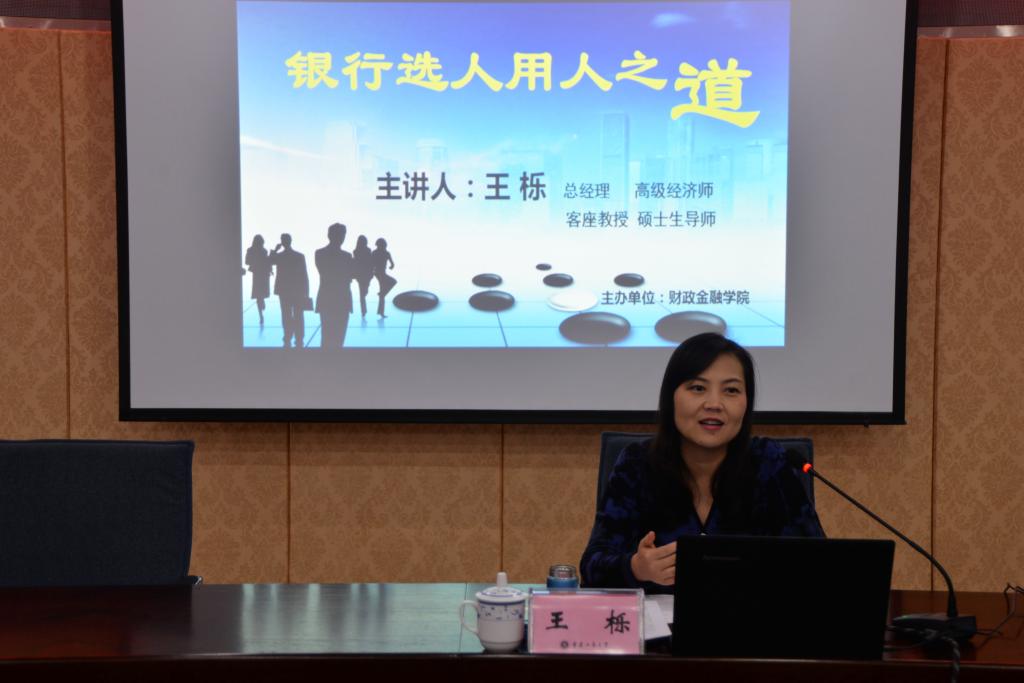 12 月17日下午,财政点点taptap官方网站“银行选人用人之道”主题讲座于厚德楼2017会议厅举行。中国建设银行重庆市分行人力资源部总经理、高级经济师、财政点点taptap官方网站客座教授、硕士生导师王栎女士作为主讲人亲临现场,与财金学子分享就业心得。