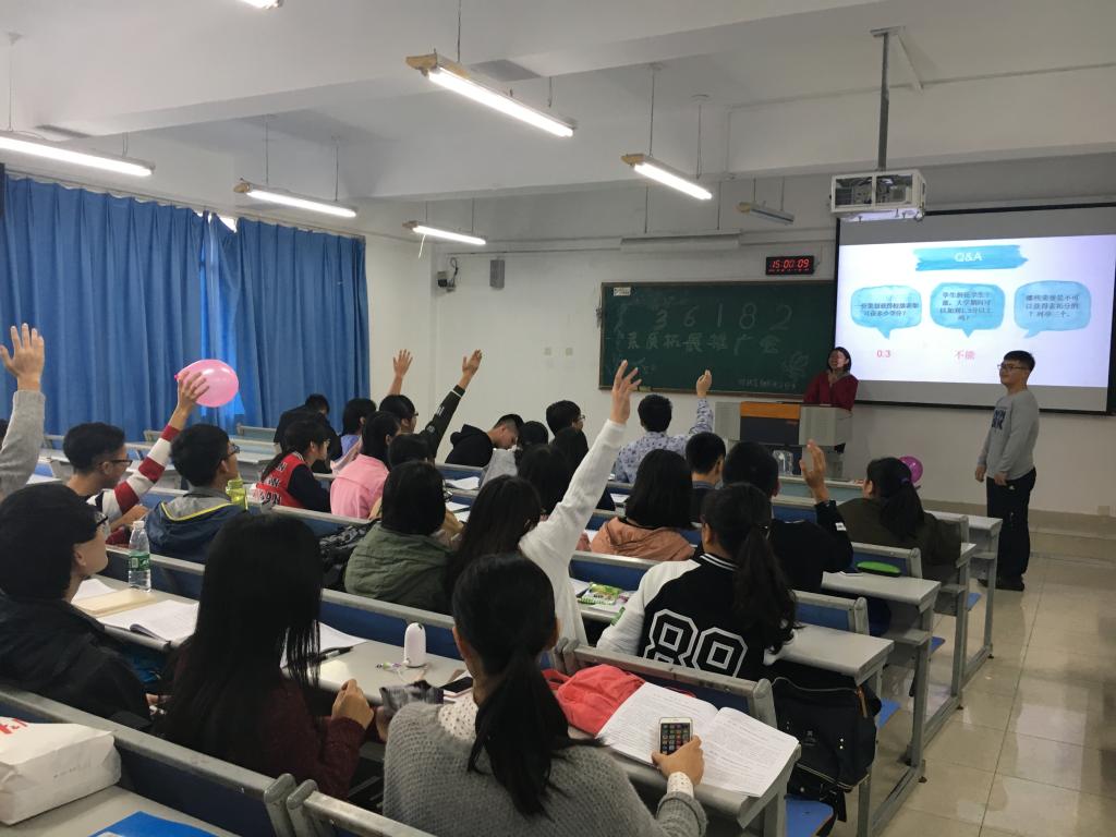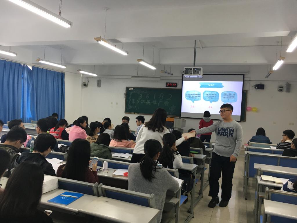 活动由内容讲解和问答互动两个部分组成。庞世强主席为本次活动做开场词,告诉大家应正确地认识和运用“36182”素质拓展工程,不断提高自己的综合素质。紧接着,何凯萌部长和余柔芳部长向大家详细地介绍了“36182”的内涵,强调了素拓分对每一个老员工的重要性,更告诉了大家如何获得素拓分。互动环节,同学们在参与游戏和赢得奖品的同时,也对“36182”有了更为深刻的认识。最后陈曦曦部长对本次活动进行了简单总结。