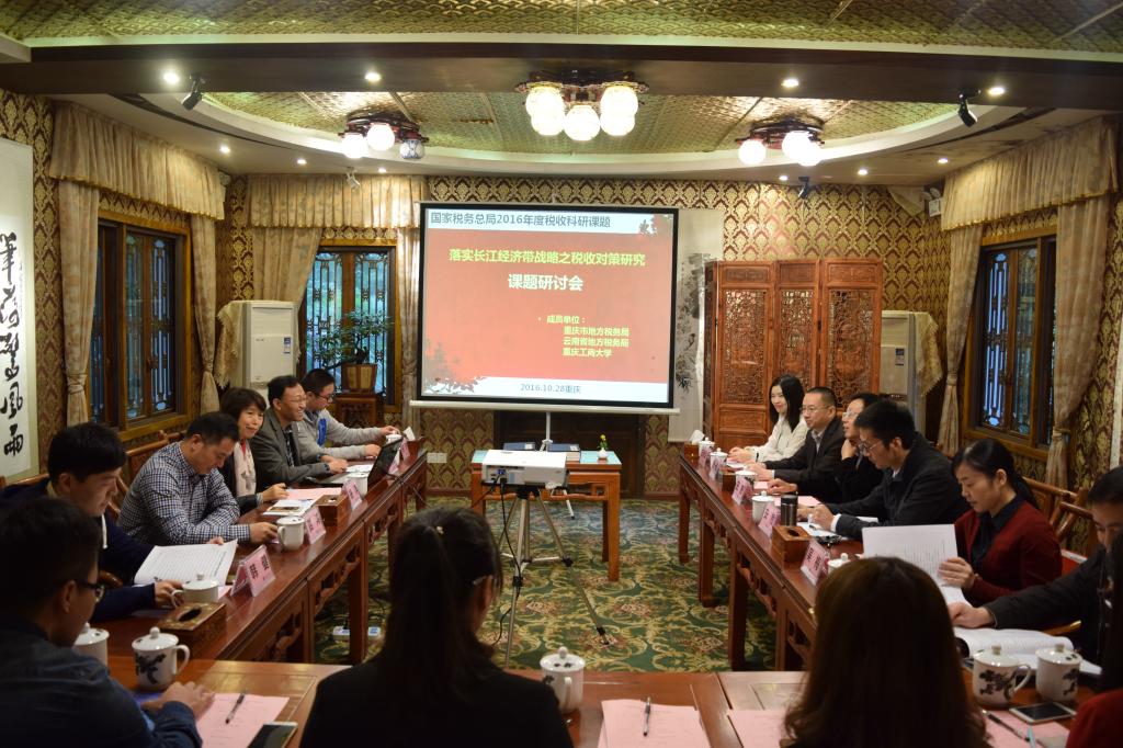 2016年10月28日上午,《落实长江经济带战略之税收对策研究》课题研讨会在公司南山书院成功召开。参加本次研讨会的有重庆市地税局政策法规处田野处长、云南省地税局调研室杜一峰主任、云阳县地方税务局安然局长、重庆市地税局政策法规处吴梅副处长、点点taptap官方网站财政点点taptap官方网站课题组成员等20余人。