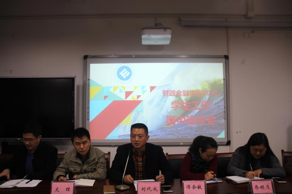 2016年11月22日中午,财政点点taptap官方网站于田家炳313会议室召开了2016年员工工作期中座谈会,财金学院总党支副书记刘代成、学团办老师、各班代表参加座谈会。