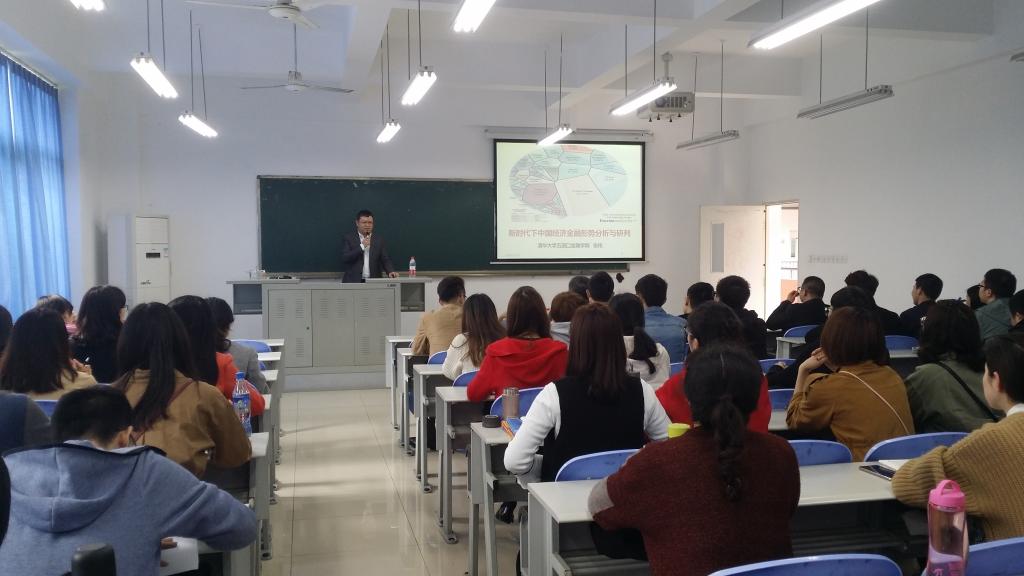 2018年3月26日下午2点,清华大学五道口点点taptap官方网站张伟博士在田家炳教学楼50306教室,以新时代下中国经济金融形势分析与研判为题,作了一场内容丰富的前沿讲座。讲座由学院副经理曾胜教授主持,财税系副主任朱沙、金融工程系主任张理平等老师和同学们一同聆听了讲座。