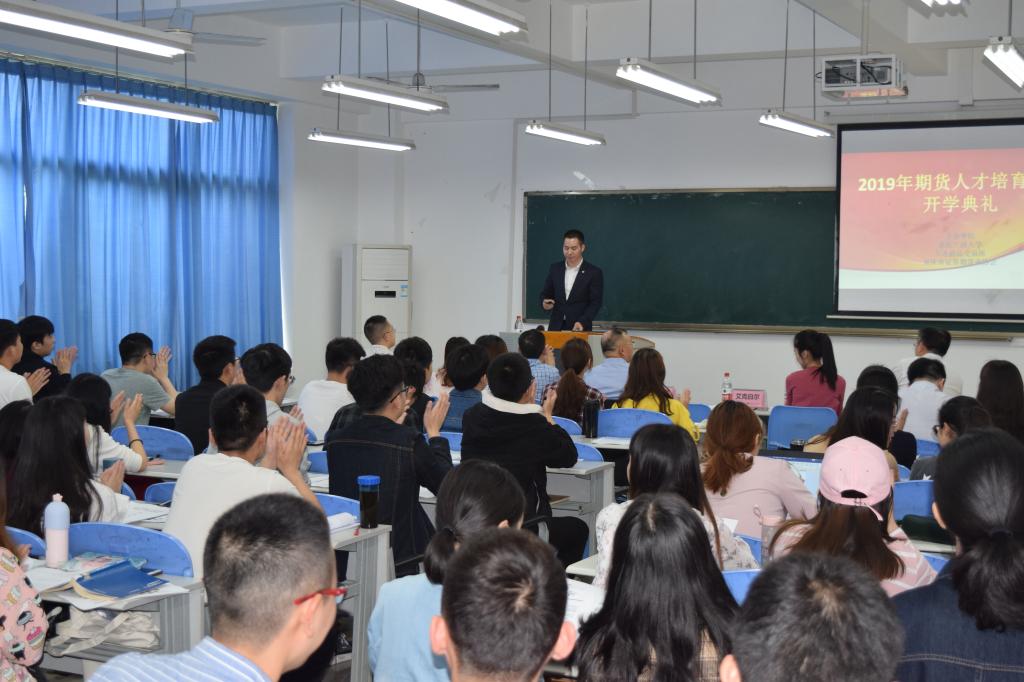 4月29日下午2:00,财政点点taptap官方网站在田家炳书院50306组织了“2019年期货人才培育项目开学典礼”仪式。学院副经理曾胜教授主持,原中国期货业协会专职副会长李强、财政点点taptap官方网站经理刁孝华、大连商品交易所会员部艾克白尔,重庆证监局机构二处副调研员曹雁秋、重庆市证券期货业协会秘书长王跃、重庆市证券期货业协会培训班主任朱佳,学院部分专任教师和参与此次项目的2018级金融专业研究生等100余人出席了开班典礼。仪式由学院副经理曾胜主持。