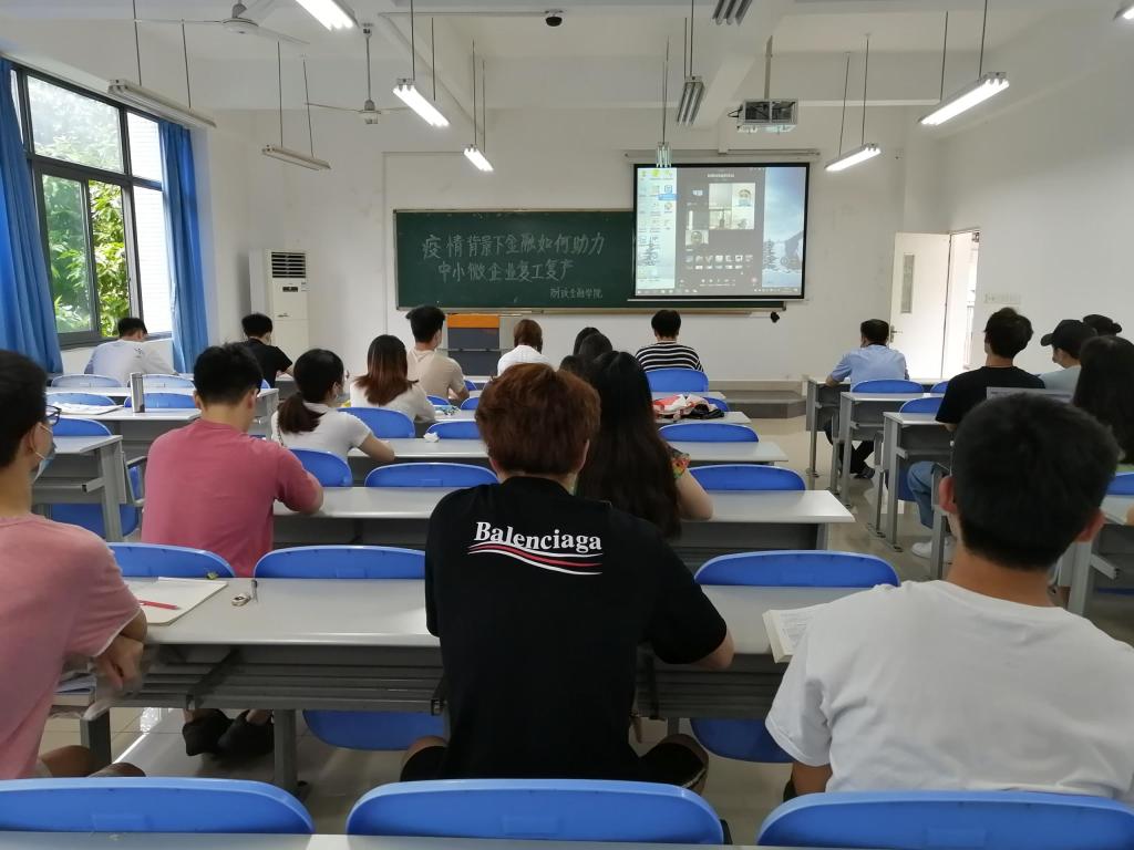 6月28日上午9点,学院“疫情背景下金融如何助力中小微企业复工复产”学术交流会议在田家炳306教室和企业微信平台“线上+线下”同步进行,学院全职引进博士曲光俊、米建华、向中华、付茂林、徐松和学院60余位师生参加了分享交流会,会议由学院分管科研副经理曾胜教授主持。