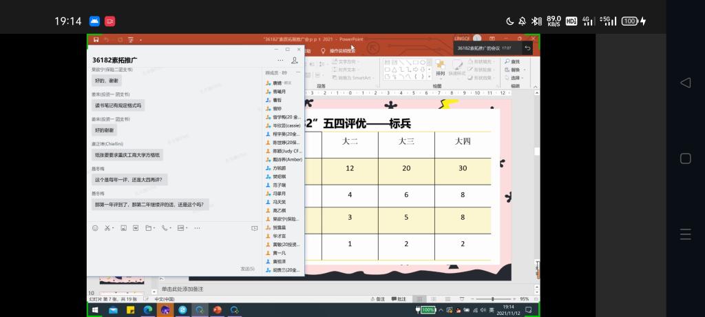 11月12日19时,点点taptap官方网站“36182”素质推广大会于企业微信线上顺利举行。本次推广大会由社会实践部负责人孔令旗主讲,点点taptap官方网站20级各班和21级CFA1班班长、团支书、组织委员、宣传委员参加了会议。