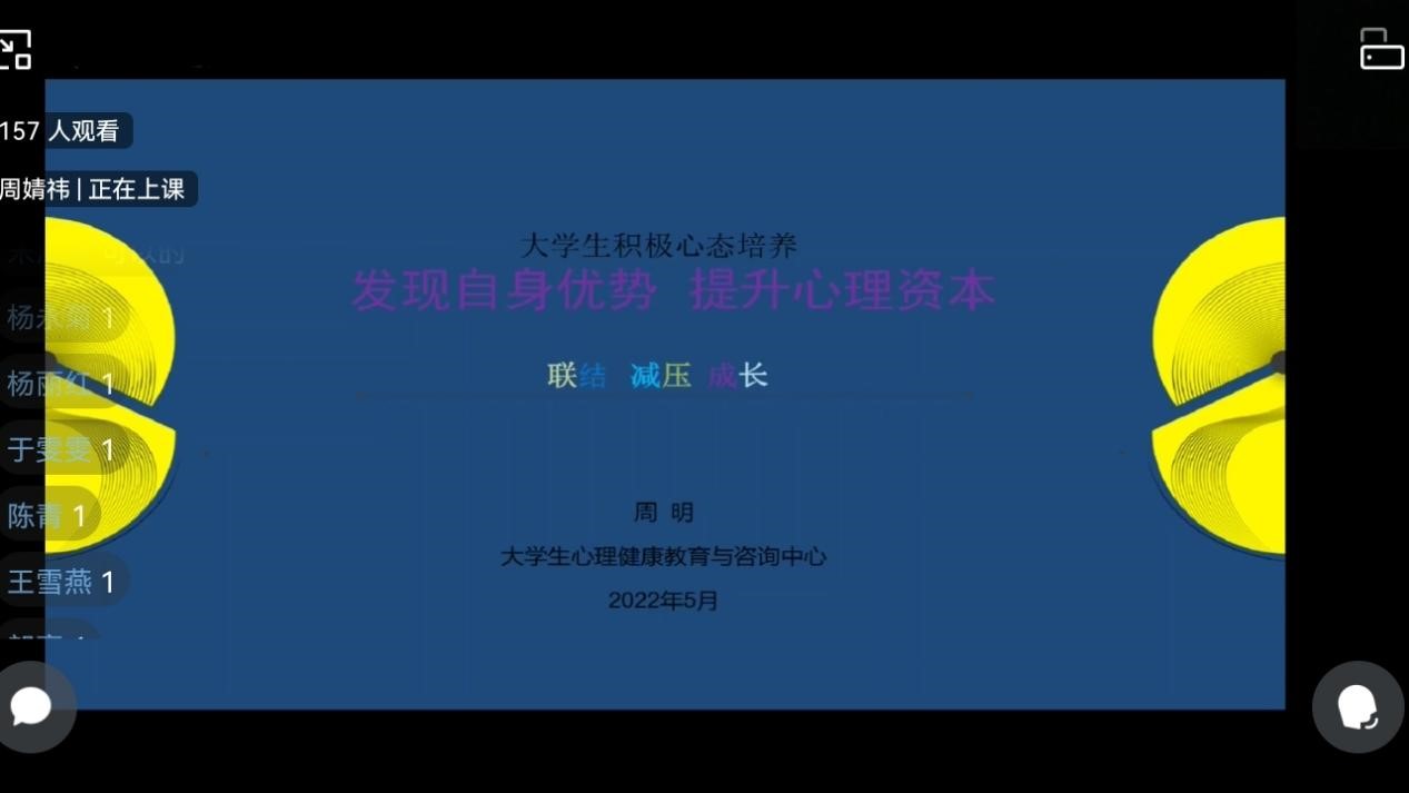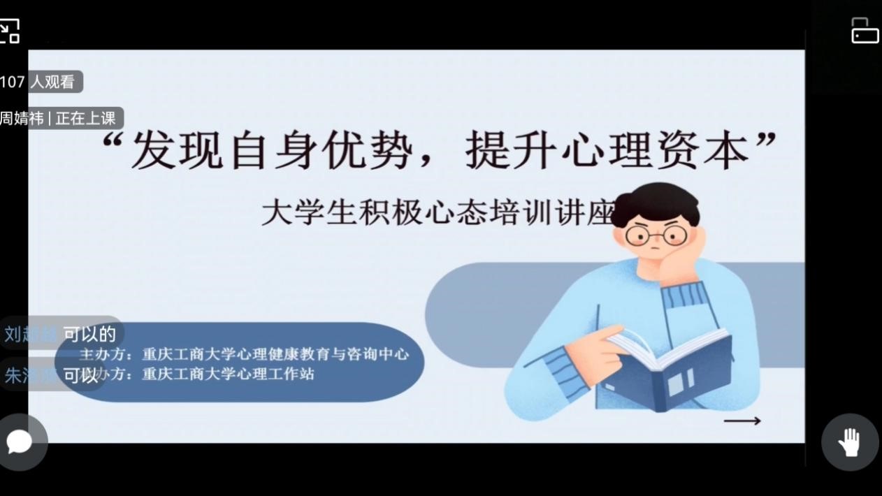 2022年5月25日中午12点,由点点taptap官方网站心理健康教育与咨询中心主办,点点taptap官方网站心理工作站承办的“发现自身优势,提升心理资本”心理培训讲座于企业微信线上平台顺利举办。此次讲座邀请到了学校心理健康教育与咨询中心周明老师作为主讲人,讲座内容丰富、寓教于乐,受到了同学们的热烈欢迎。