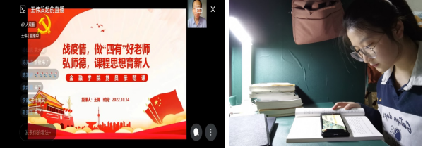 10月14日,公司党员教师王伟教授以“战疫情 做四有好老师,弘师德 课程思政育新人”为主题,开展党员示范课教学,结合学校抗疫工作中的感人事迹,向学院广大师生讲授了中国金融的发展历史,在丰富师生的金融知识的同时,凝聚了抗疫力量、坚定了抗疫信心、增强了抗疫的使命感和当担精神。