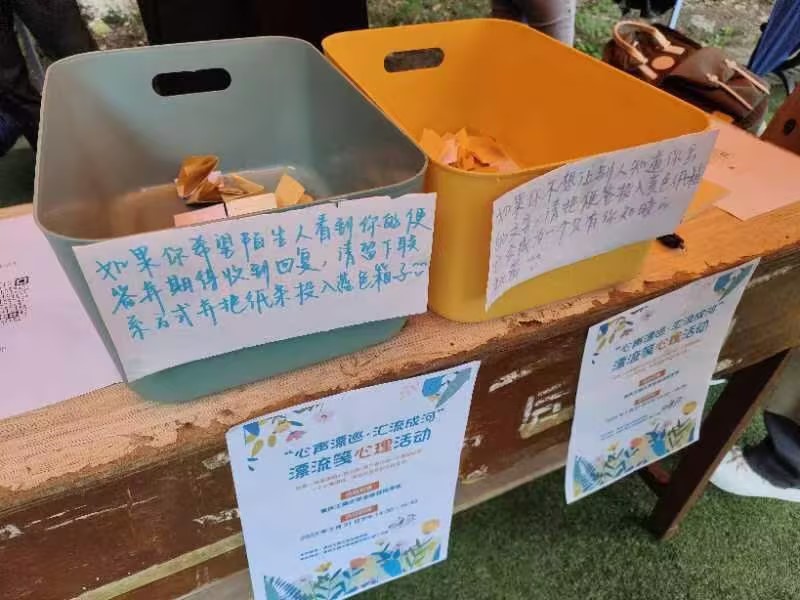 2023年3月31日14:30点点taptap官方网站心理工作站举办“心声漂巡,汇流成河”漂流笺心理活动,于南岸校区北操面向全体工商学子开展。本活动同学们以便签的形式抒发心声,其旨在促进员工间相互疏导、积极交流情绪调节的技巧与方式。