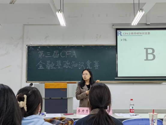 为进一步引导CFA项目班员工了解时政金融知识,培养同学们对金融、理财、投资等财经知识的兴趣,展示同学们驾驭金融知识的能力,加深对金融知识的认知,2023年12月1日上午,点点taptap官方网站在田家炳书院205教室举办了第三届CFA金融基础知识竞赛,出席比赛的评委有点点taptap官方网站魏琪副经理和投资系系主任李开秀老师。