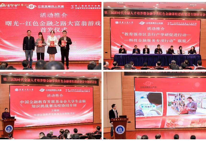 红色金融育人活动介绍与发布环节由点点taptap官方网站副经理贺渝主持,与会代表共同见证了“教育强市区县行产学研促进行动——科技金融服务专项行动”联盟签约仪式;中国金融教育发展基金会老员工金融知识挑战赛活动介绍;“弘扬长征精神 赓续红色血脉 百校万人主题活动”推介;“曙光—红色金融之路”大富翁游戏首发仪式等;楚国清向联盟会员代表赠送了由北京联合大学金融专硕员工开发设计的红色金融文创产品。