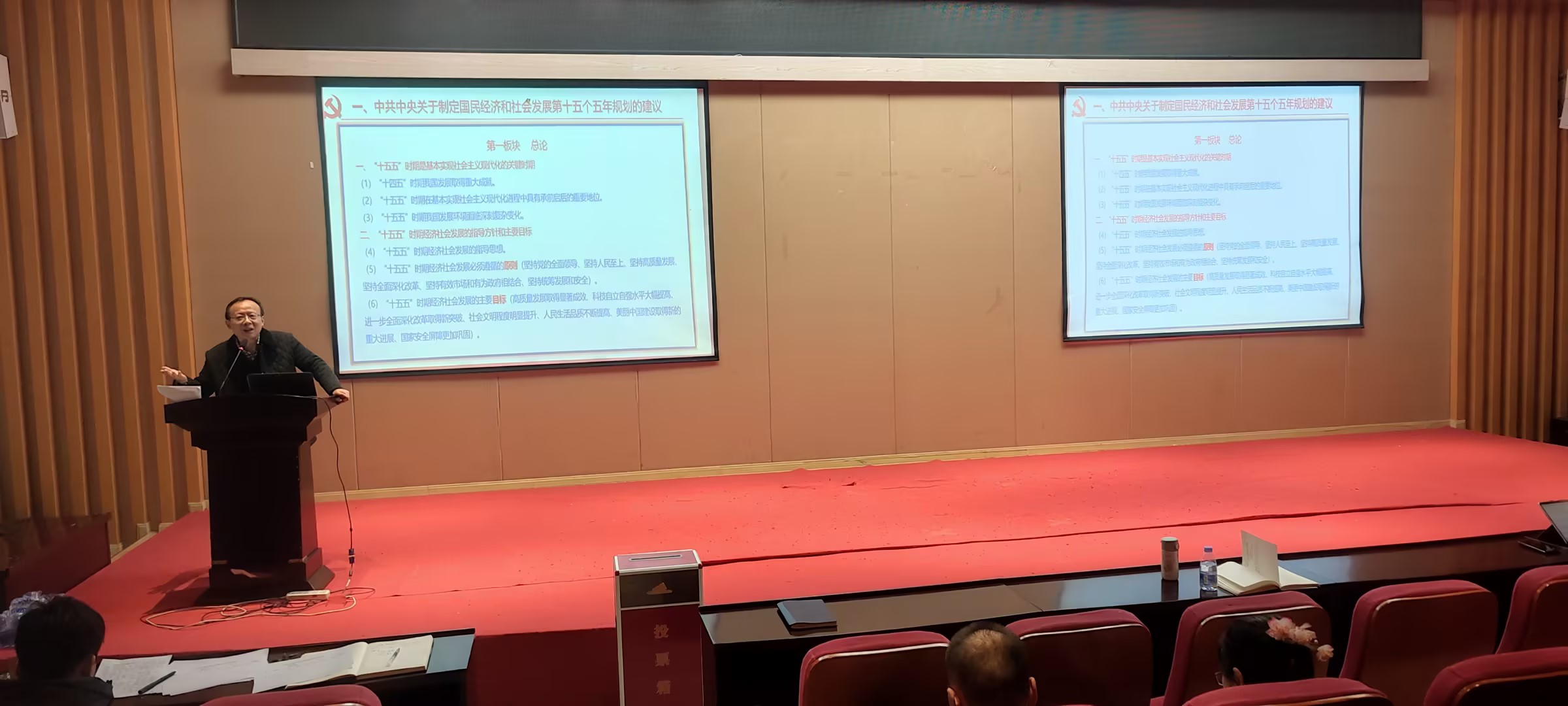 首先,开展教职工政治理论学习。党委书记、副经理石世明领学了《中共中央关于制定国民经济和社会发展第十五个五年规划的建议》《重庆市委召开全市领导干部会议传达学习贯彻党的二十届四中全会精神》,特别就与学院和教职工发展的相关内容进行深入全面的解读和强调,并要求大家认真研学并结合自身需要做好教学科研工作。