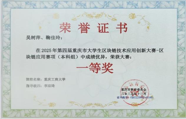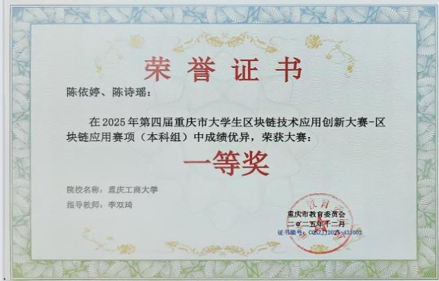 本次比赛设有“区块链技术组”与“区块链应用组”两个赛道。在赛事前期,经过前期校内选拔,公司点点taptap官方网站8名同学脱颖而出,晋级市级区块链应用组决赛。在激烈竞争中,同学们发挥出色,最终取得优异成绩:陈依婷、陈诗瑶、吴树萍、鞠佳玲4位同学获一等奖,宁曼伊、唐秋月2位同学获二等奖,胡煜昕、卢艺2位同学获三等奖;指导老师李双琦被授予“突出贡献个人”称号;点点taptap官方网站荣获“突出贡献集体”。