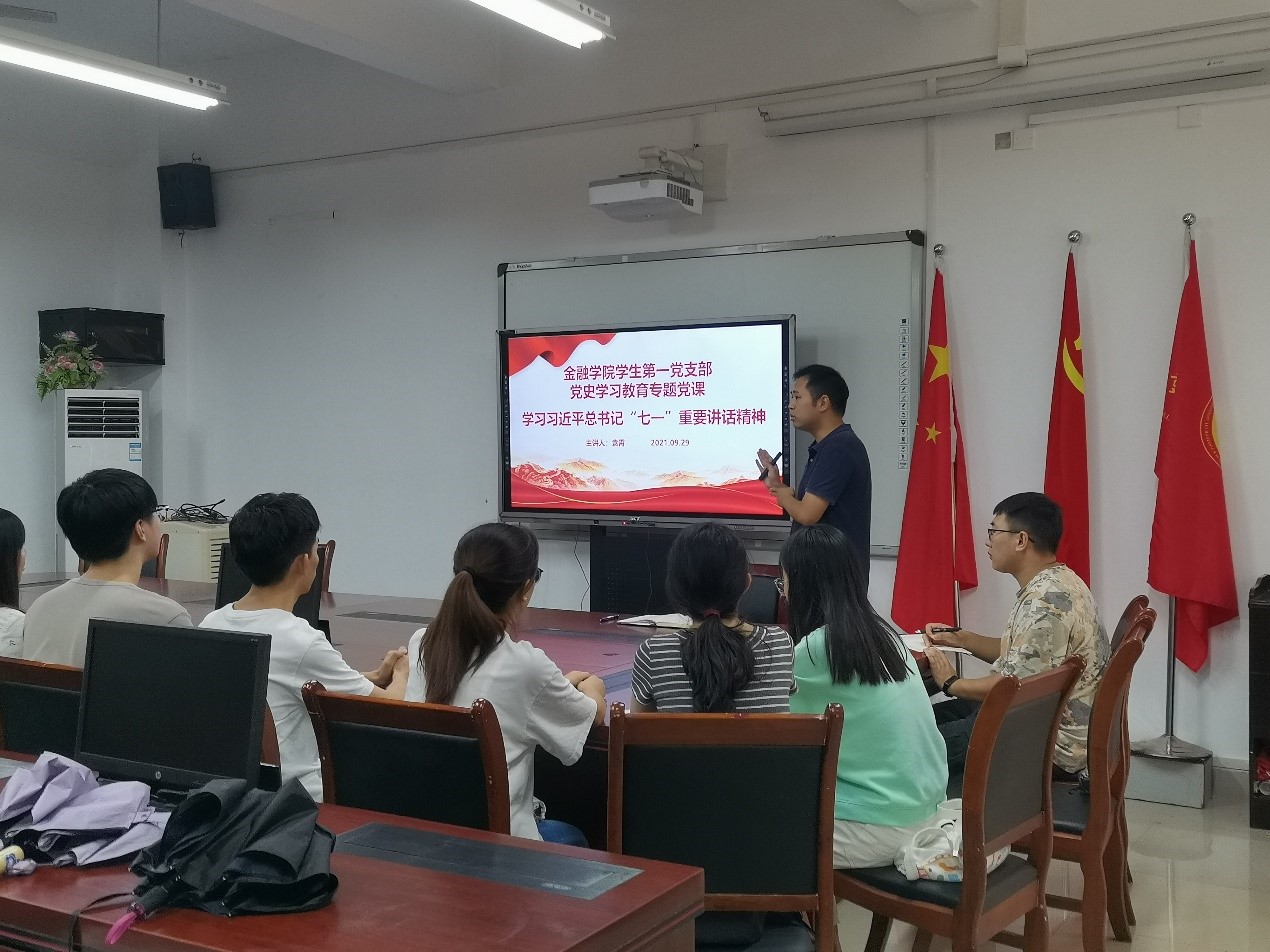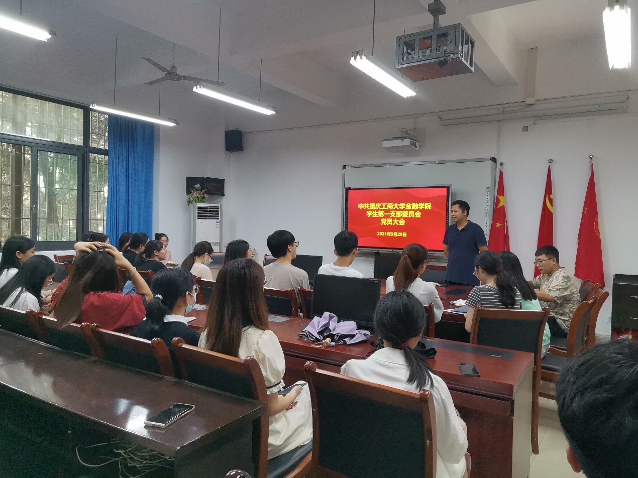 袁霄为全体党员讲授专题党课,主题是贯彻学习习近平总书记“七一”重要讲话精神。袁霄从新民主主义革命、社会主义革命、改革开放到社会主义现代化建设,回顾了中国共产党百年历史以及取得的四个伟大成就。他指出,中国共产党之所以能取得四个伟大成就,与中国共产党的伟大建党精神密切相关,即:坚持真理、坚守理想,践行初心、担当使命,不怕牺牲、英勇斗争,对党忠诚、不负人民。要实现中华民族的伟大复兴,就要做到九个必须:必须坚持中国共产党的领导、必须团结带领中国人民不断为美好生活而奋斗、必须推进马克思主义中国化、必须坚持和发展中国特色社会主义、必须加快国防和军队现代化、必须不断推动构建人类命运共同体、必须进行具有许多新的历史特点的伟大斗争、必须加强中华儿女大团结和必须不断推进党的建设新的伟大工程。对于正处于意气风发青年党员来说,应该树立远大的目标,心中有理想,并为之不断奋斗努力,不要辜负自己,更不要辜负家人、老师的期望,努力让自己成为对国家和社会的有用之才。作为一名共产党员,更要不忘初心,牢记使命,牢记全心全意为人民服务的宗旨,更好的造福人民。