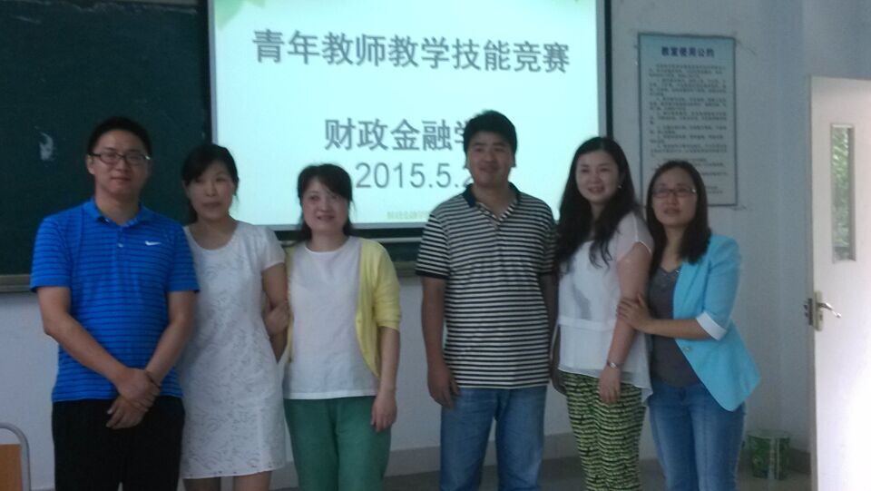 。有六位老师:田杰、陈晓莉、王雪梅、朱沙、吕秀梅和杨柳参与此次竞赛。陈勇阳、贾鸿、张理平、周渊和余涛等五位老师担任评委。整个竞赛顺序进行,田杰老师第一个出场,简单而完整的介绍了国债的发行和流通市场,紧接着,王雪梅老师通过案例深入浅出的讲解了货币时间价值理论,朱沙幽默生动的介绍了个人所得纳税人及征税对象,杨柳详细而深入分析和探讨了创造派生存款机制,吕秀梅则生动而准确的介绍了凯恩斯的流动性偏好理论,陈晓莉以一个典型案例讲解了如何对投资项目进行经济效益费用分析。最后,评委老师代表张理平就参赛老师的讲解给予了点评,指出了各位老师的亮点和不足。通过三个部分综合评分,决议由陈晓莉和吕秀梅两位老师代表学院参与校级青年教师大赛。