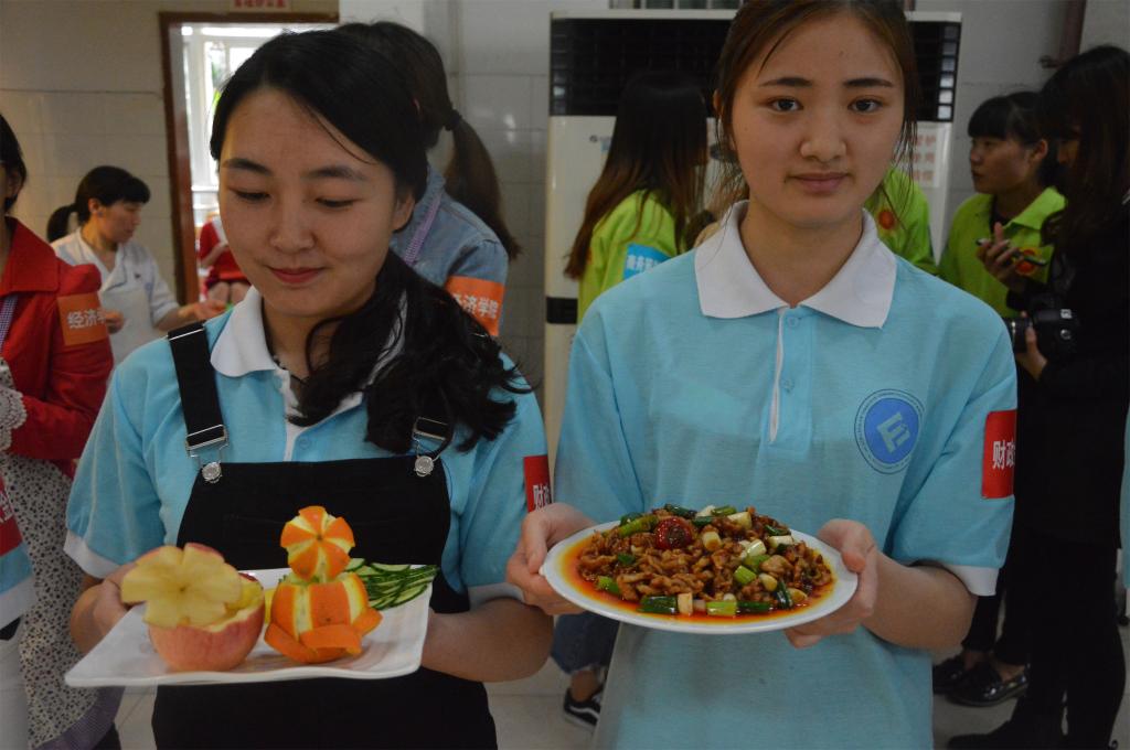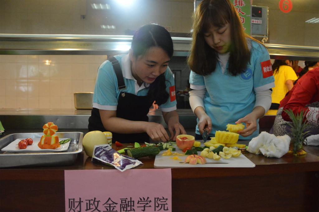 比赛开始前,现场观众就十分热情,期待选手们带来的美食盛宴。在主持人的随机采访中,财金啦啦队有幸被第一个采访并高声喊出了学院的口号:财金美食,别具匠心;余香缭绕,沁人心脾。一轮采访后,主持人介绍到场嘉宾,比赛便正式拉开帷幕。各个学院分为三组,轮番上阵,每队中两人负责菜品烹饪,另两人则负责水果拼盘;选手们在二十分钟内大展身手,秀尽厨艺,做出了一道道香喷喷的菜肴和精美的水果拼盘。其间,观众们在享尽眼福、口福的同时,也积极参与互动。惊险的吹气球单人比赛、高难度的吃薯片比赛、考验默契的画画猜意比赛等得到观众的热情参与。最终,财政点点taptap官方网站获得92.28分的好成绩。