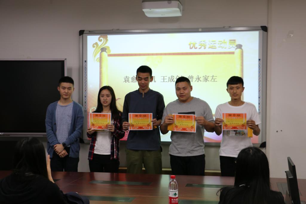 接着,由学院分团委员工会体育部部长张元宝对校运会工作进行总结汇报,优秀运动员代表、方阵队员代表、优秀工作者代表讲述了他们参加运动会的感想与心得。最后是颁奖环节,员工会主席团先后为优秀工作者、杰出贡献个人、优秀运动员代表、优秀方阵代表颁奖。同学们获得的不仅仅是这一份荣誉,更承载着无数同学对他们的期望与信任。正如优秀运动员代表李凯所说:“最开始报名的时候,同学们让我报200米、400米、接力……我说报!当时没有想到能得多少奖,只是想要去为这个集体做点什么。”天将降大任于斯人也,不怨辛劳,人生如此。