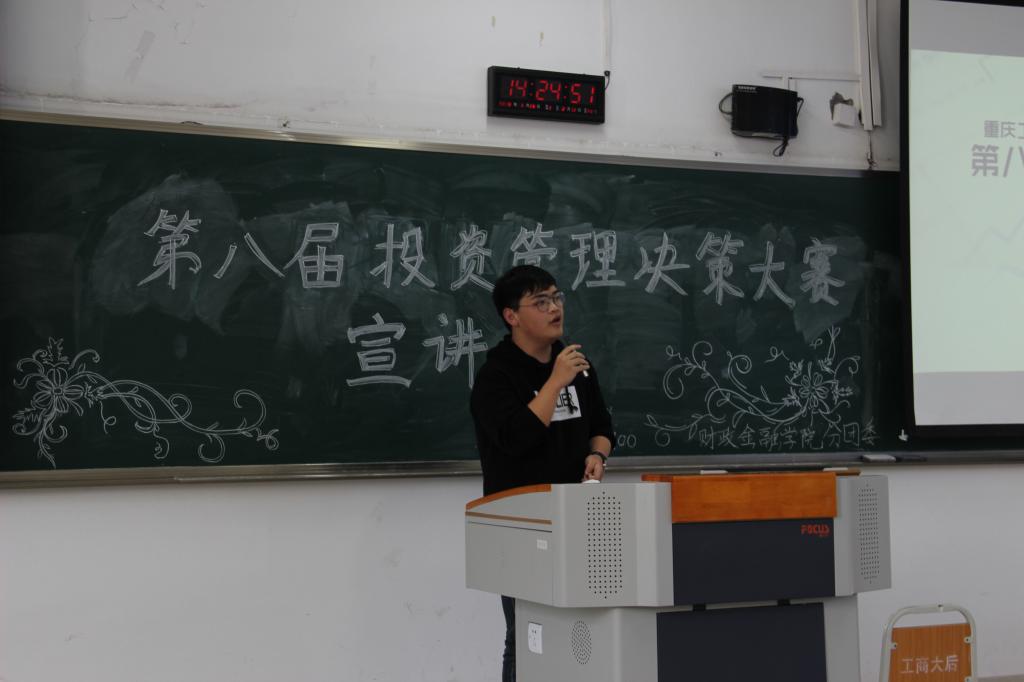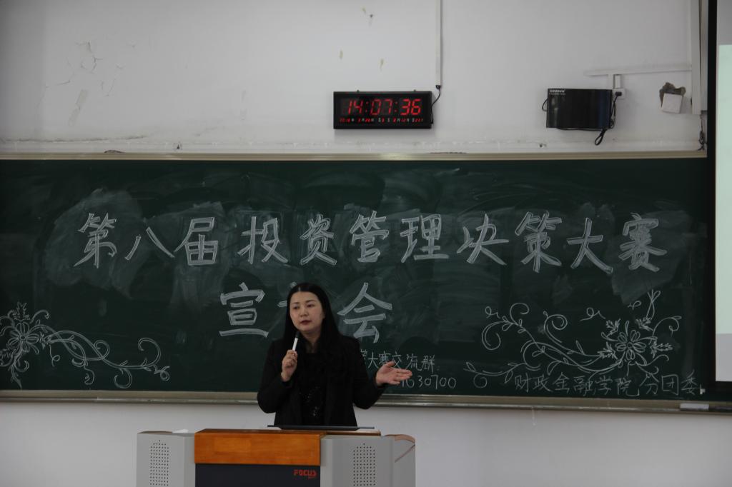 为响应“大众创业,万众创新”的号召,财政点点taptap官方网站以校团委“第十六届‘新儒商’老员工科技文化节”活动为依托,于2018年3月16日下午两点在博智楼308成功举办了第八届投资管理决策大赛宣讲会。本次宣讲会邀请到了投资系老师陈晓莉老师、财政点点taptap官方网站分团委书记徐阔老师以及财政学专业陈羲羲学长为同学们指导。