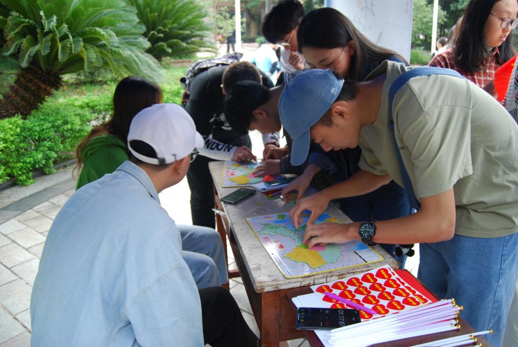 本次活动在祖国七十周年发展历程中选取了建国喜讯传遍神州华夏、改革开放初现光芒、今日科技迅猛发展、中华儿女团结一心共同追逐中国梦四个主要阶段为展示内容,并以其为话题展开了四个答题游戏环节。环节一中大家通过传声的形式传递建国知识,感受建国之喜;环节二,结合经济发展与财金专业特色,以数钱的方式再现改革开放经济腾飞的盛景;环节三,同学们在科技产品的组装中感受科技的魅力,同时为祖国今日科技发展的繁盛景象感到自豪喜悦;环节四,同学们在地图拼装中增强中华民族团结统一,祖国领土不可分割的意识。在附加环节,工商学子踊跃积极与国旗合影,充分展现家国情怀。在各环节中,同学们了解了祖国发展的艰难与不易,同时为祖国今日的成就感到自豪。