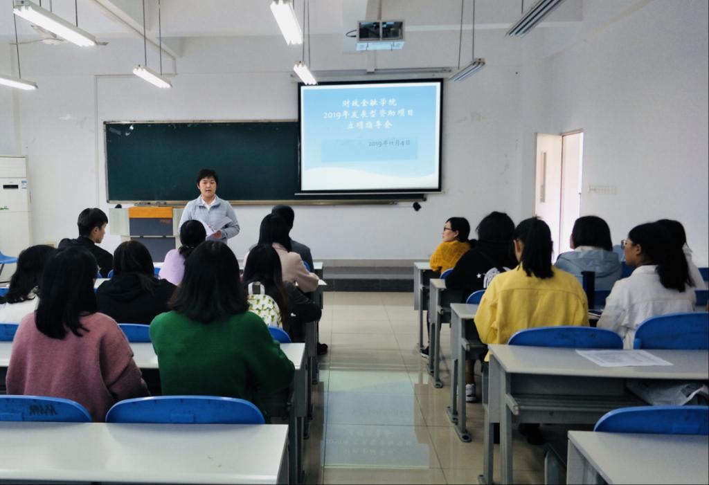 2019年11月4日,财政点点taptap官方网站召开发展型资助项目立项指导会,会议由学院资助工作联系人张国培老师主持,22名通过学院初审获得立项资格的同学参加会议,学院员工工作办公室副主任兰丽娟老师出席会议并发言。