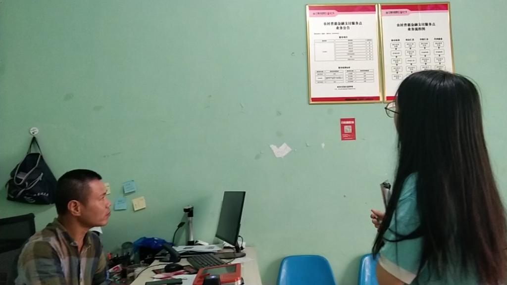 鳌江村普惠金融服务站主要负责帮助村民办理医保、社保,处理民政,帮助特困户,贯彻精准扶贫等工作。工作人员表示,村中没有赡养费的老人居多,仅靠手工无法维持生计,所以服务站每月发放一百多元补助金维持老人们基本生活。站点内通常来来往往的是没有条件上网查询社保补贴到账信息的村民,工作人员也为不会使用网上充值的村民代缴电费、充话费,有时还会上网为村民生活琐事查询解决方案。普惠金融站肩负起“纽带”职能,为村民讲解国家出台的惠民政策,将百姓与政府间信息不对称问题带来的影响减小,努力保持农民足不出村就能享受便捷的金融服务。一位前来查询医保卡余额的村民表示,不用再因为普通业务需要赶早坐车去城里了,普惠金融站的设立的确方便了生活。