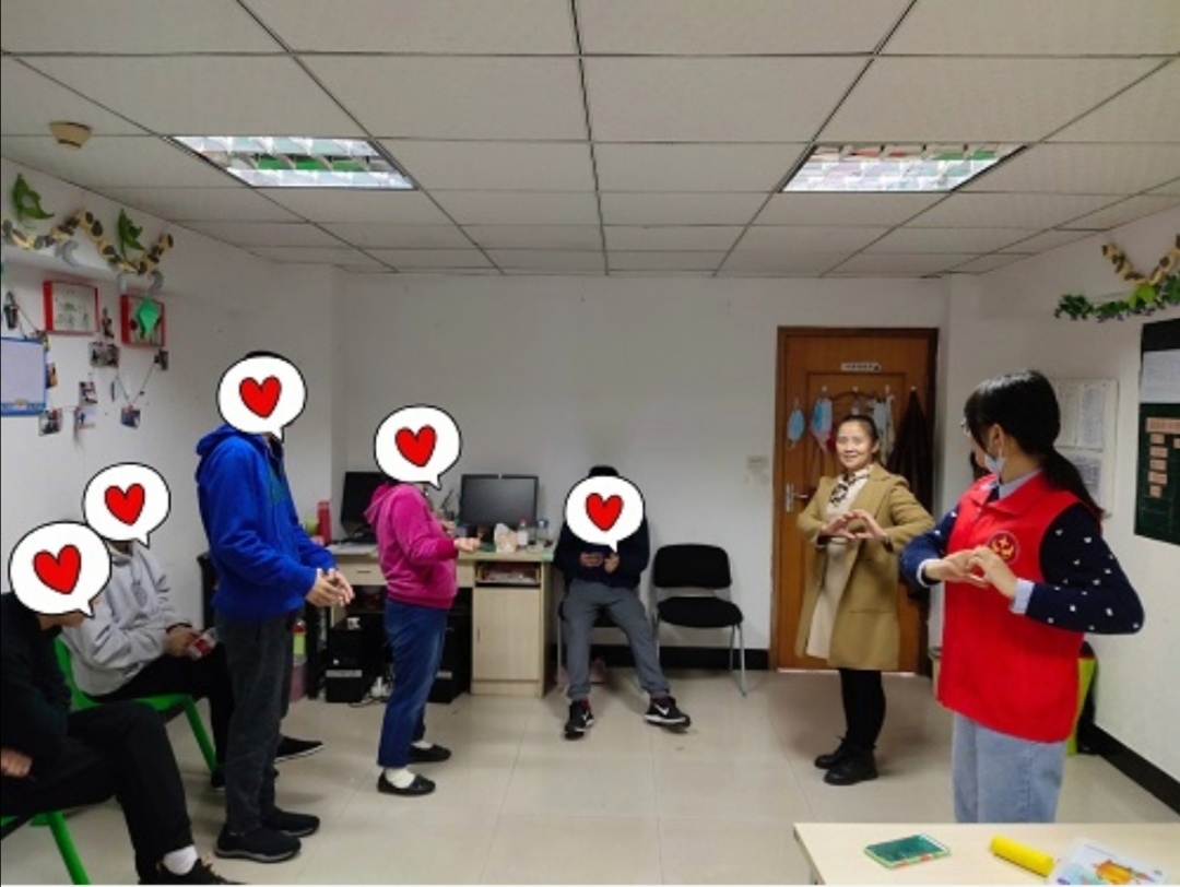 “听我说谢谢你,因为有你,温暖了四季……”11月10日上午,在重庆市南岸区昌龙城市花园慧灵活动中心,来自点点taptap官方网站“星火”义工志愿者协会的成员们,利用无课时间陪伴自闭症患者排练《听我说谢谢你》手语操。