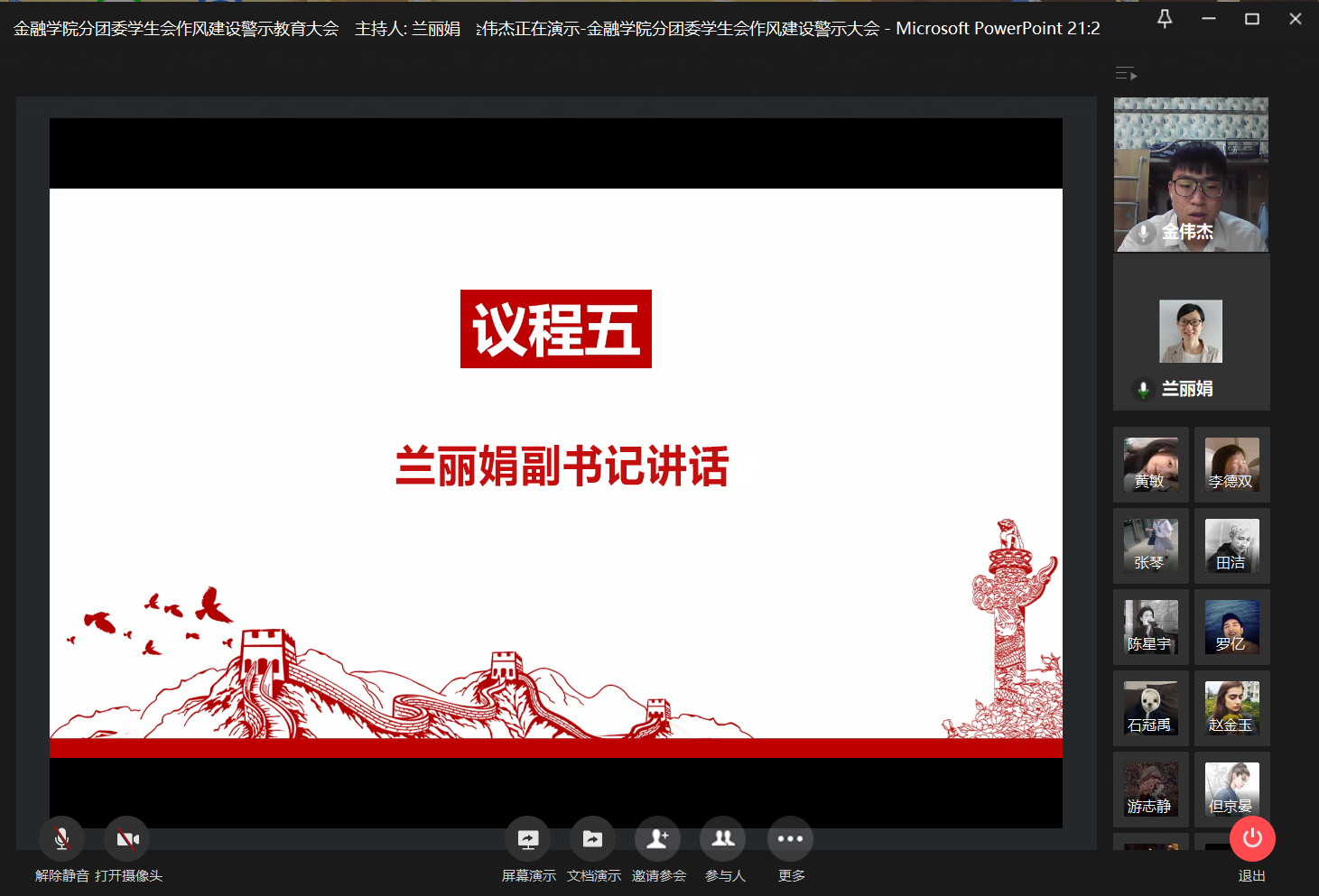 为加强员工干部作风建设,引导员工会和谐健康发展,2020年11月25日21:00,点点taptap官方网站分团委员工会于企业微信召开线上作风建设警示教育大会,学工办副主任、分团委副书记兰丽娟老师与员工会全体成员参与了本次大会。