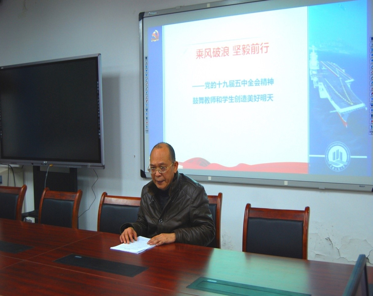 首先,王建明书记为大家讲解了学院学习贯彻党的十九届五中全会精神的整体部署及方案,号召同学们利用形势与政策课、主题班会、团日活动等多种形式全方位开展党的十九届五中全会精神的学习,要求辅导员老师和员工干部要在同学中广泛宣传党的十九届五中全会精神,加强对广老员工的培训与指导。