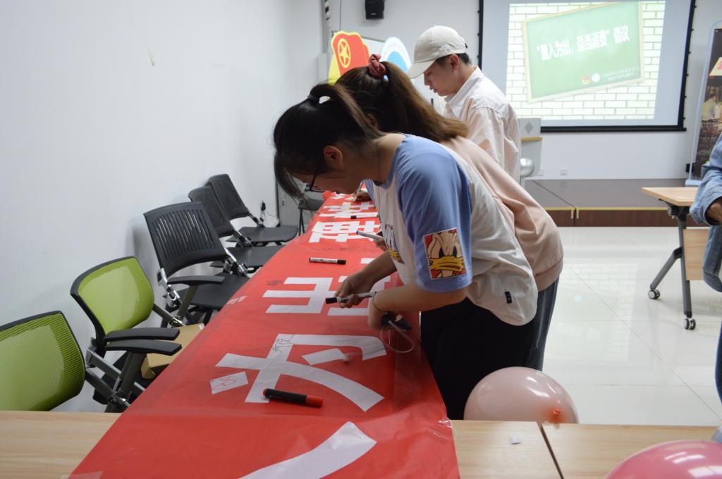 演出期间,主持人通过知识问答、分发问卷的方式向同学们传播消费知识。演出结束后,同学们分享身边发生的案例,提到了二手买卖脱离平台交易被骗、淘宝退款链接被骗、微信QQ被盗要求转钱被骗等。最后,点点taptap官方网站分团委(员工)副书记田凯玉对活动进行了总结,再次普及金融防诈骗知识,同时倡导同学们量入为出,理性消费。活动结束后,同学们在横幅上签字响应正确消费的号召。