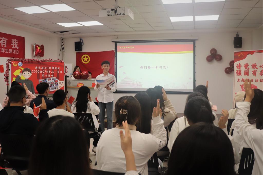 11月1日14:30,点点taptap官方网站2020级CFA专业一支部于员工发展中心002会议室展开主题为“请党放心,强国有我”的团日活动。点点taptap官方网站教工一支部书记黎毅,点点taptap官方网站学工办副主任、分团委副书记兰丽娟及2020级CFA专业一支部全体团员参与了活动。