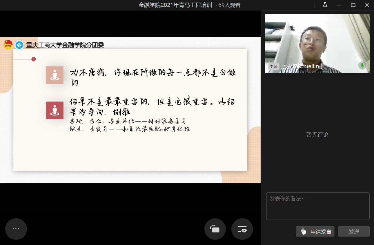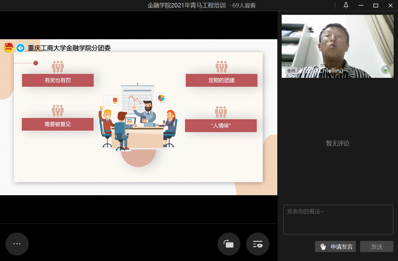 为进一步提高团干部的实践能力和组织协调能力,2021年10月20日21时,点点taptap官方网站第二期青马工程培训之“汲取宝贵经验,赓续前行力量”于企业微信线上直播顺利举行。
