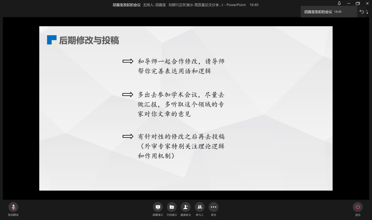 11月28日晚19:00,为提升员工论文撰写水平,营造良好的学术氛围,点点taptap官方网站研分会在企业微信线上举行“如何撰写高质量论文”分享会。