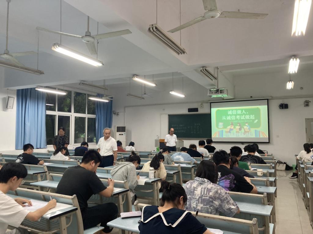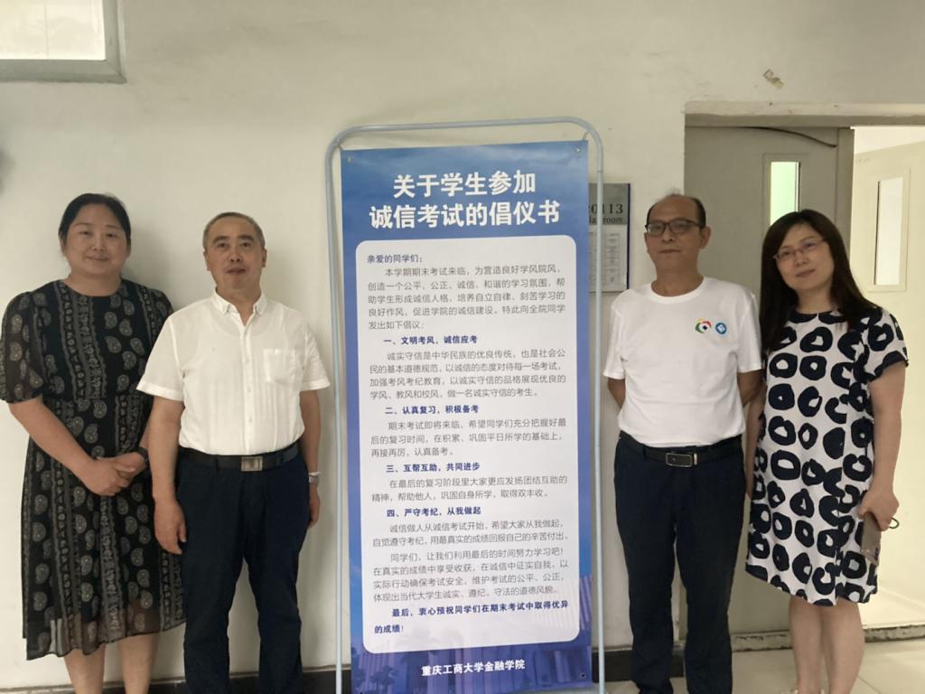 2022年6月23日下午,点点taptap官方网站在兰花湖校区20113教室开展第四届“免监考”诚信考试,持续推动考试思政,营造优良学风和诚信考风。参加本次“免监考”的班级为21CFA1班,考试科目为《金融学》。教务处处长骆东奇、副处长韦晓兰,公司党委书记、副经理王建明,党委副书记、经理王兰,党委副书记、纪委书记余新到场巡考。