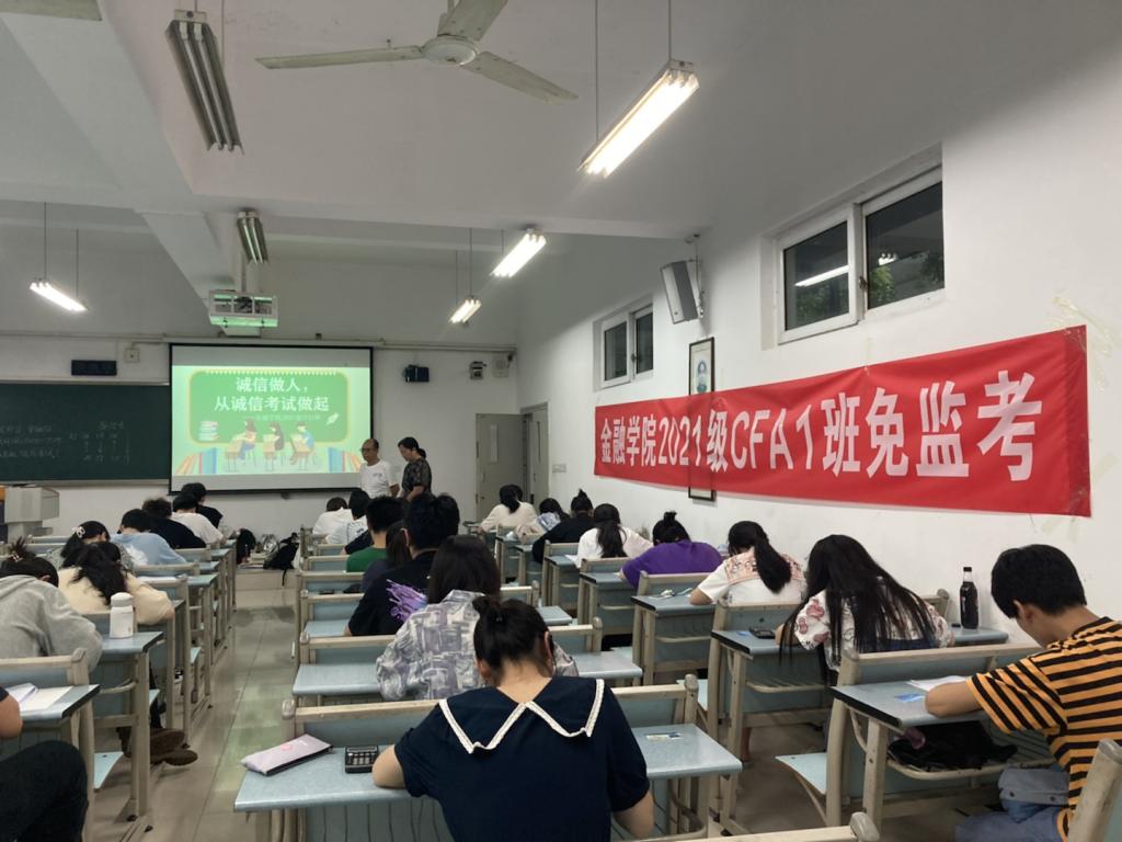 “免监考”诚信考试已在公司持续开展二十余年,是落实立德树人根本任务的有效举措,在多个学院多个班级留下实践印记,工商学子用言行坚守诚信,用行动做社会主义核心价值观的坚定信仰者、积极传播者和模范践行者。21CFA1班37名同学在共同观看《“免监考”+“诚信档案” 考试思政二十年的探索与实践》视频后,对“免监考”诚信考试的意义、实施情况有了更加全面的了解,纷纷表示支持,愿意参加到“免监考”诚信考试中来。考试前,他们自愿签订《诚信考试承诺书》;考试中,他们严格遵守“免监考”注意事项,认真答题,诚信应考,整个考试过程秩序井然。