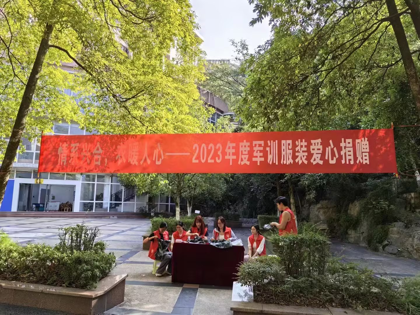 烈日当空,志愿者们坚守在北十广场和南五两个捐赠点上,带着饱满的热情去接下每一件充满爱心的服装,并整理折叠好分小包装袋。纷至沓来的金融学子将他们的军训服装交到志愿者手上,他们捐赠的不止是衣服,还有他们为兴合村发展的一份绵薄之力。每一件温暖的衣服,都带有爱心的温度;每一个小小的善举,都带有满满的能量。在活动结束后,学院将在下一次党建共建活动中将募捐到的衣服赠给兴合村,切实帮扶困难群众。