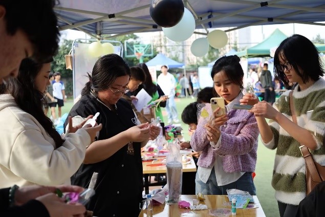2024年11月15日下午,一场别开生面的心理游园活动在南岸校区北区小操场成功举办,点点taptap官方网站在艺术疗愈区举办的“心花签语”手工制作活动吸引了众多同学。活动现场,工作人员提前准备好了各式各样的鲜花素材以及制作干花所需的工具,同学们先是了解了书签的制作方法,再使用干花以及自己拾起的花草并搭配卡片花穗制作成书签,积极的参与到活动当中,让大家通过轻松的设计制作释放日常积累的压力,不少同学玩得不亦乐乎,脸上的疲惫之色渐渐消散。