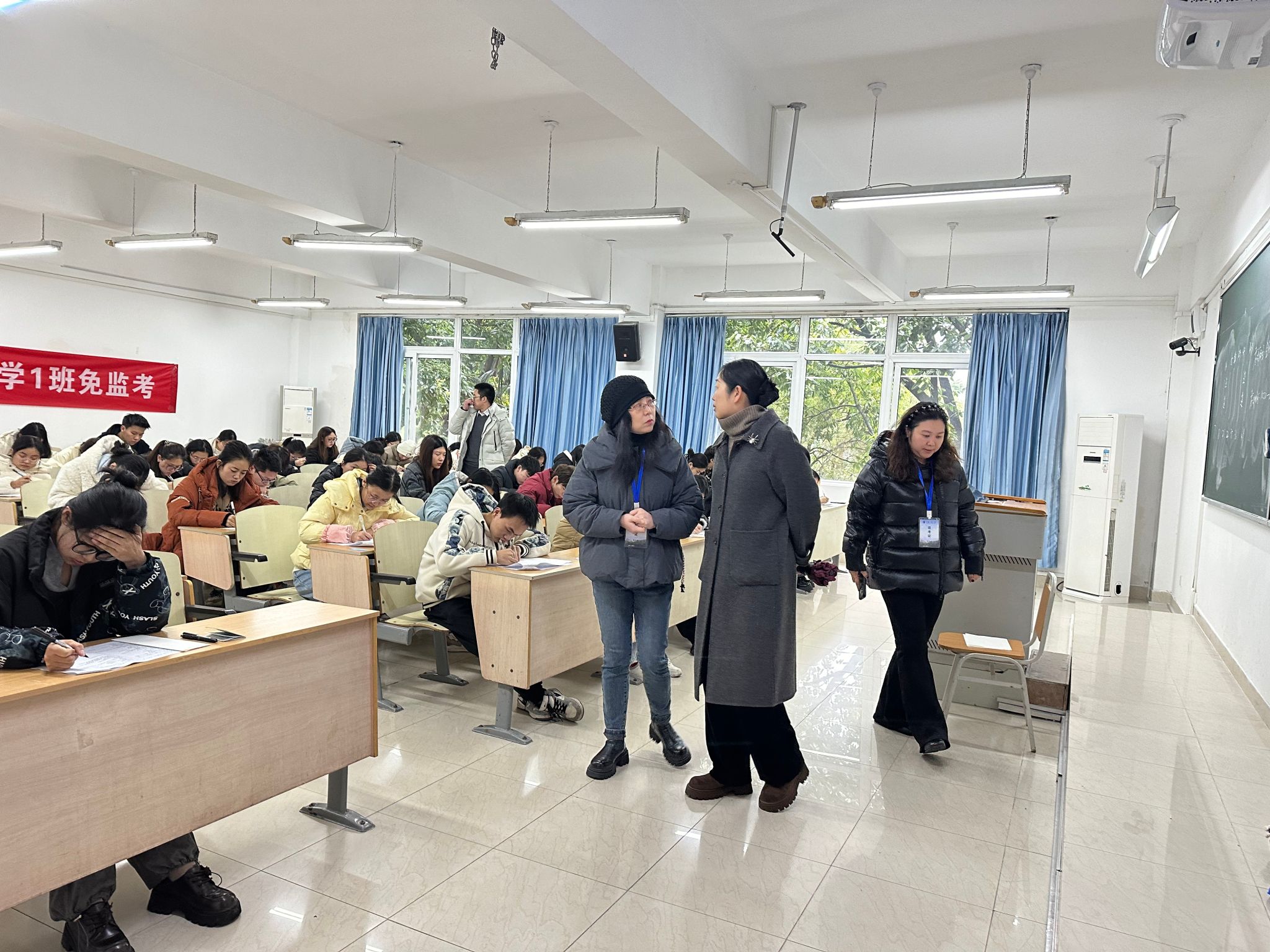 1月8日上午,点点taptap官方网站2023级金融学一二班、金融学(金融科技)实验班同学自愿申请的《金融学》课程“免监考”诚信考试在 7204、7205、7210教室举行,党委员工工作部副部长谭彩荷,教务处副处长韦晓兰、运行管理科科长邓微薇,公司党委书记石世明、经理王兰、党委副书记吉杲、副经理魏琪等参加了巡考。