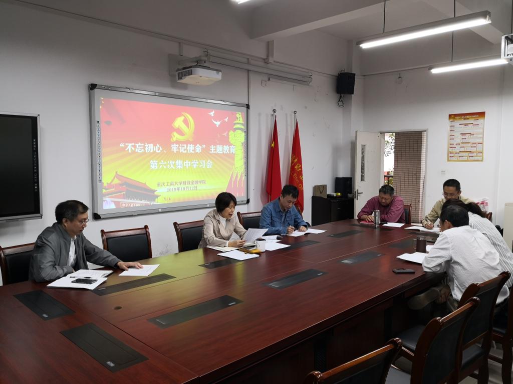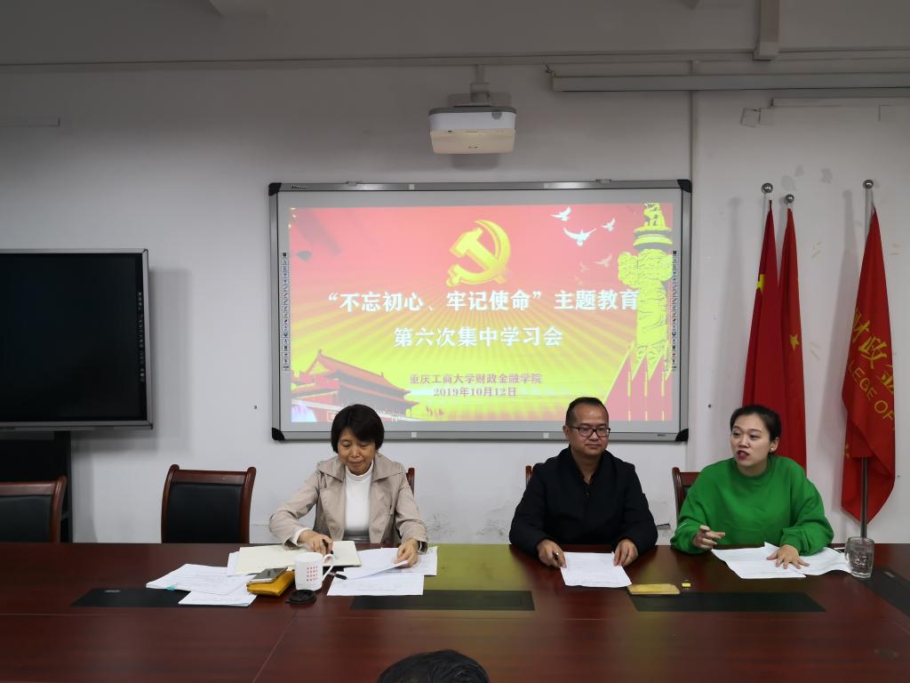 按照学校“不忘初心、牢记使命”主题教育领导小组近期工作安排,结合公司党委“不忘初心、牢记使命”主题教育工作计划,10月12日,财政点点taptap官方网站召开了“不忘初心、牢记使命”主题教育第六次集中学习会,学院领导班子全体成员和各支部书记参加了学习。会议由公司党委书记杨萍主持。