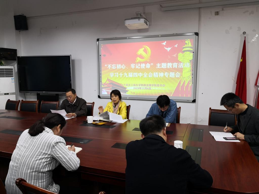 11月6日,财政公司党委召开专题会贯彻学习领会十九届四中全会精神。会议由党委书记杨萍主持,班子全体成员参加了学习。