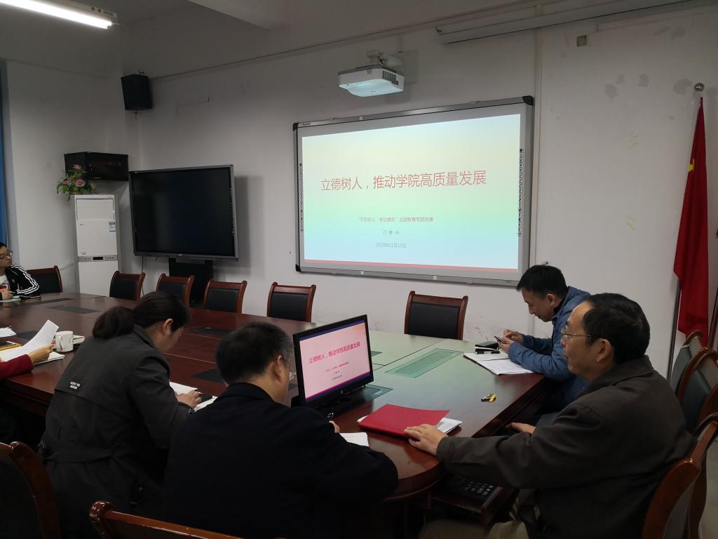 经理刁孝华主讲题目是《立德树人,推进学院高质量发展》。他结合学院工作实际,认为:一是目前学院正由规模化发展向内涵式发展转型,需要将创新发展理念贯穿于高质量发展中,要从学院现实情况入手,立德树人,大力推进公司产品改革,不断提高人才培养质量。二是广大师生员工对美好生活的向往就是我们奋斗的目标。要积极运用各种资源和外部环境,充分调动广大教职工的积极性。不断激励广大教职工积极为国家和社会培养更高质量的复合型、应用型、创新型、国际化人才。