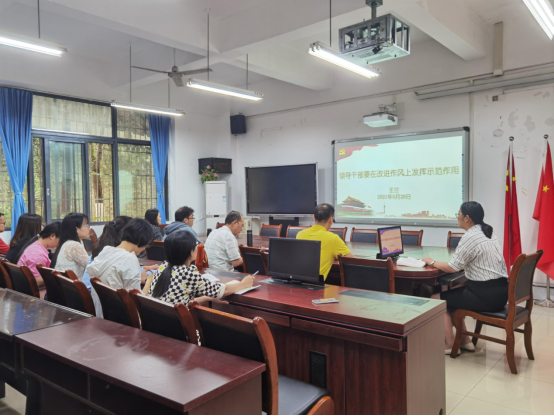 5月20日下午,公司党委副书记、经理王兰为学院领导班子成员、行政干部、辅导员老师讲授题为“领导干部要在改进作风上发挥示范作用”的党史学习教育专题党课。公司党委书记、副经理王建明、公司党委副书记、纪委书记余新、学院副经理庞楷、专职组织员赵甫刚、全体行政人员、辅导员老师参加此次专题党课。