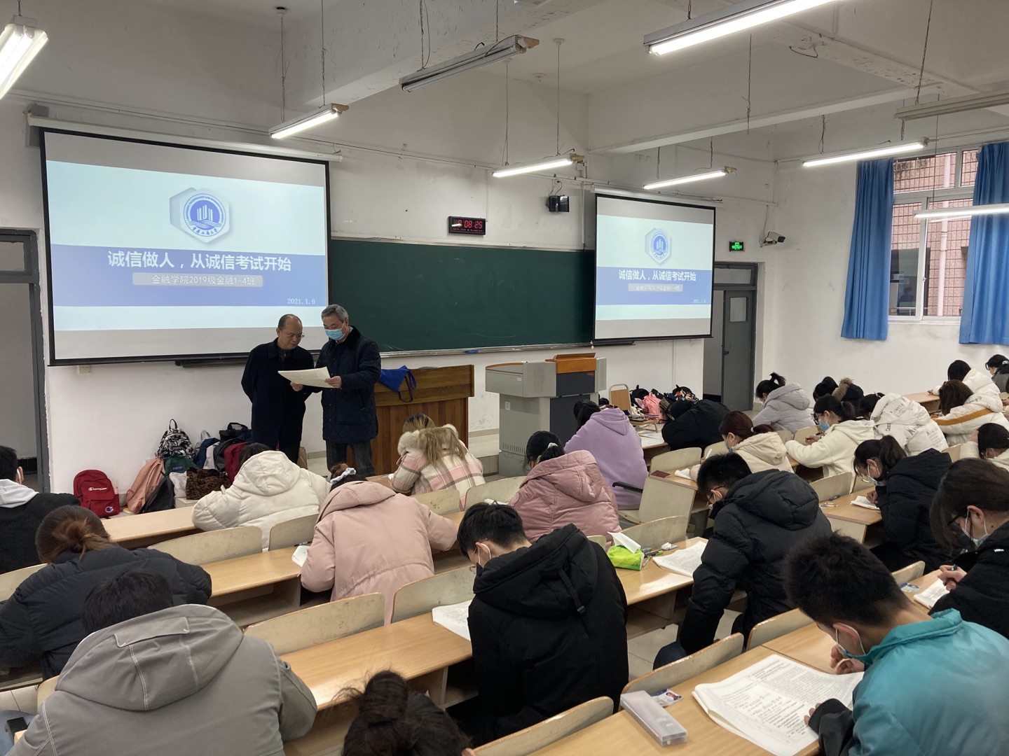 为培养具有“新儒商”精神的新时代老员工,践行“诚信做人,从诚信考试开始”的誓言,2021年1月6日点点taptap官方网站2019级金融学专业共计159名员工自愿申请在博智楼07207和07208教室举行《金融学》课程的“免监考”诚信考试,这是点点taptap官方网站首次举行的“免监考”诚信考试,副董事长李国军教授、董事长助理谭松涛教授前来巡考。