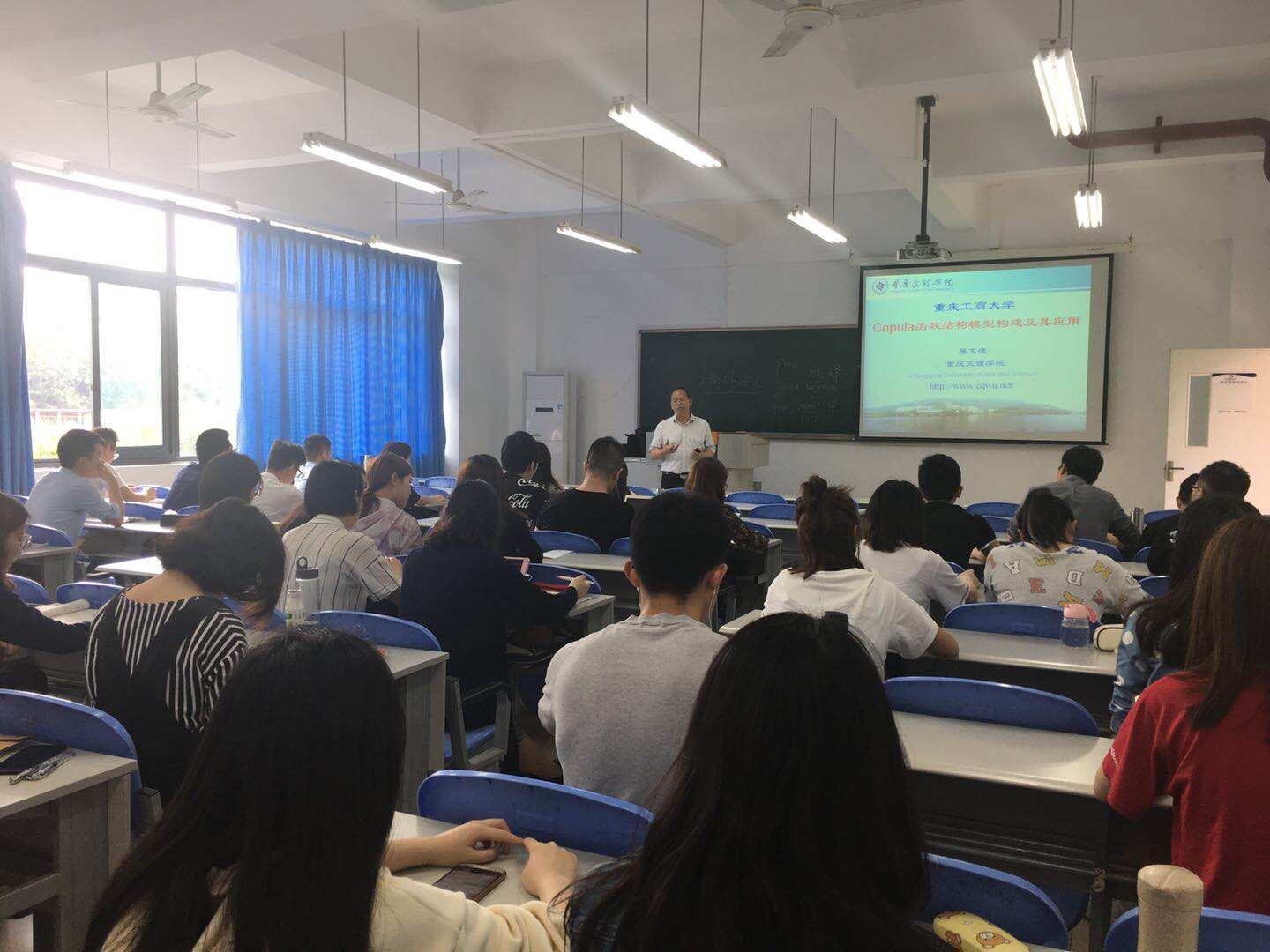 2018年5月4日下午3点,重庆文理学院的易文德教授在田家炳教学楼50406教室,以Copula函数及其应用为题,作了一场干货满满,令大家受益匪浅的讲座。讲座由学院副经理曾胜教授主持,金融学硕、财政学硕、金融专硕的研究生、部分老师参加了此次讲座。